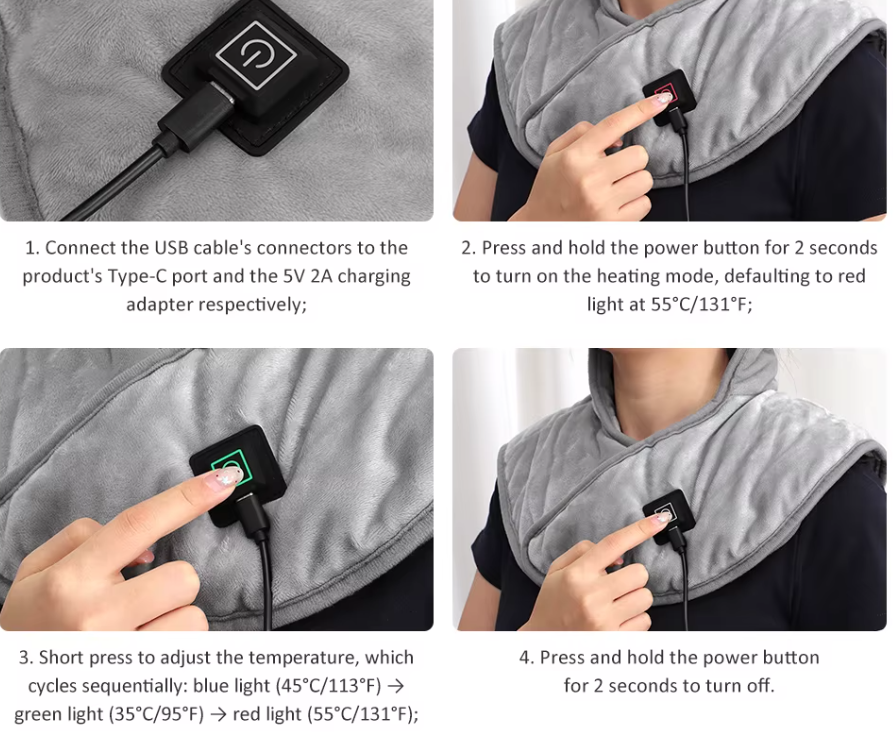 Find your perfect warmth — choose between Low (35°C) for gentle comfort, Medium (45°C) for daily relaxation, or High (55°C) for deep soothing heat.